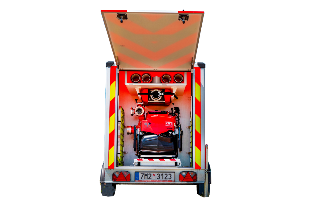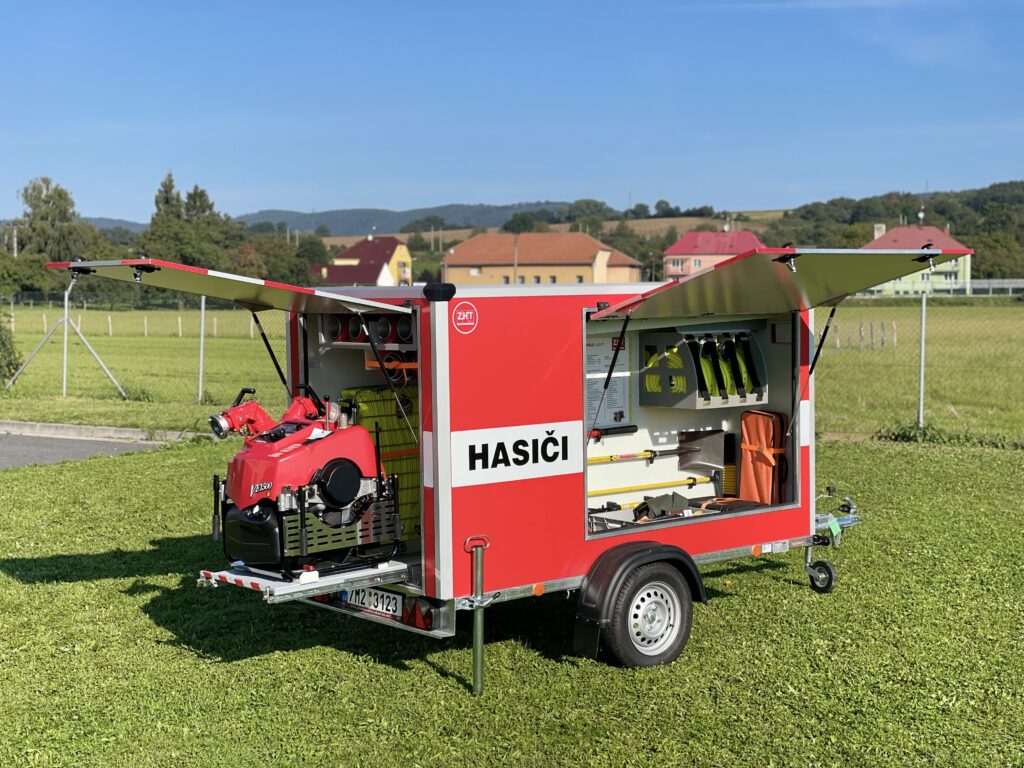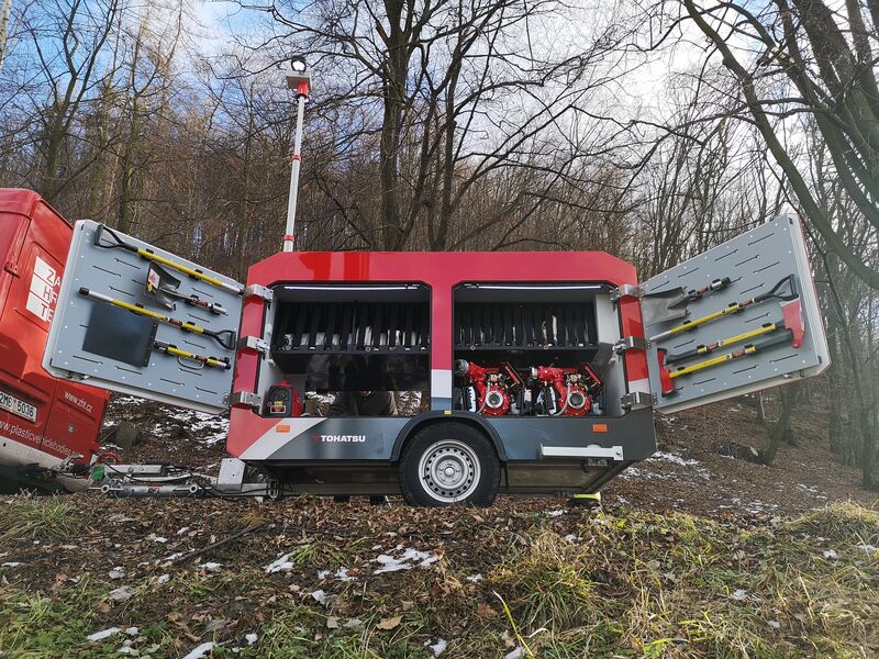 Přívěs je určen pro kompletní řešení likvidace lesních požárů. Díky nízké hmotnosti a modulární konstrukci umožňuje rychlou dopravu co nejblíže k požáru i v těžko dostupném terénu.